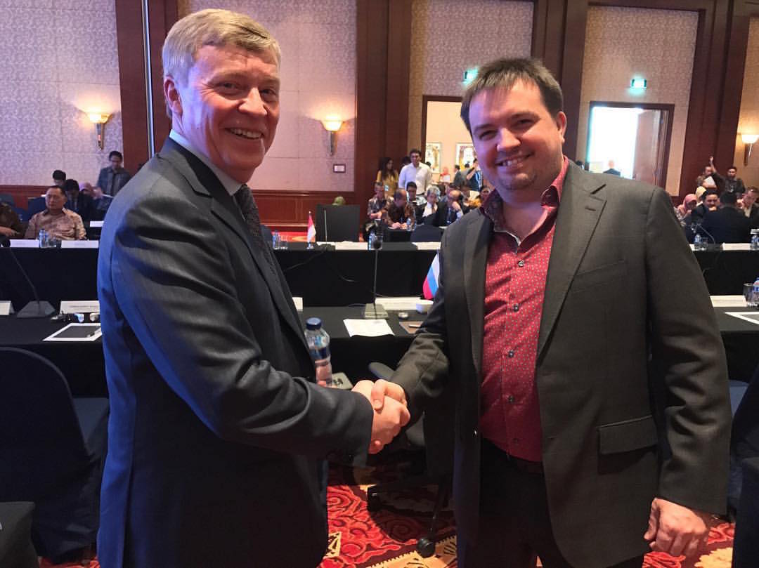 В ходе форума руководители RCNTEC, «Т-Платформ» и «Телекомпаса» провели рабочую встречу с послом России в Индонезии М.Ю. Галузиным. На встрече обсуждались вопросы продвижения российских высокотехнологичных продуктов и решений на индонезийском рынке.